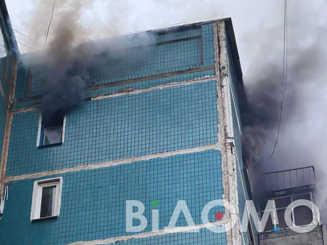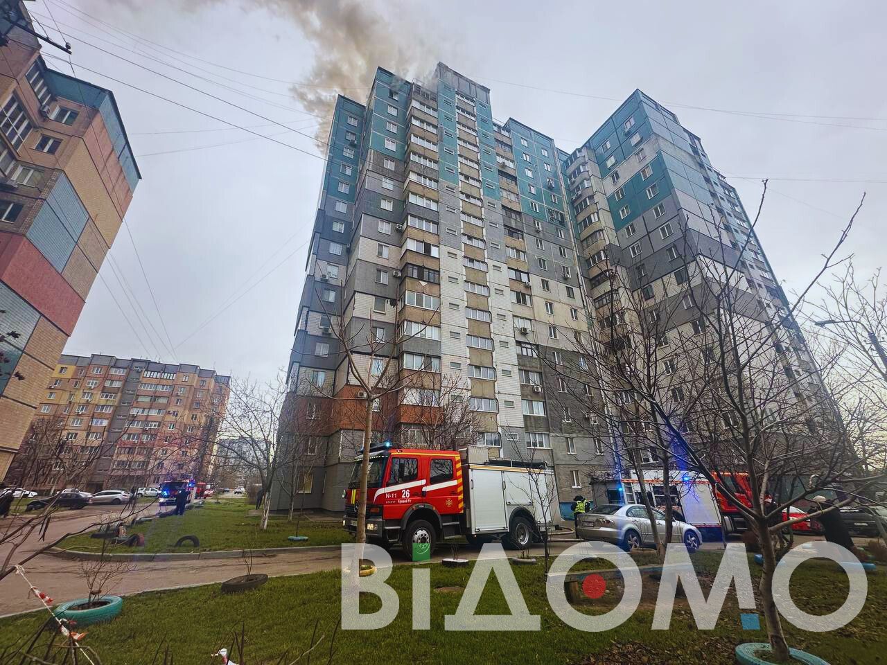 Полумʼя охопило повністю чотирикімнатну квартиру на 16-му поверсі, а клуби густого диму здійнялися вгору з усіх вікон.