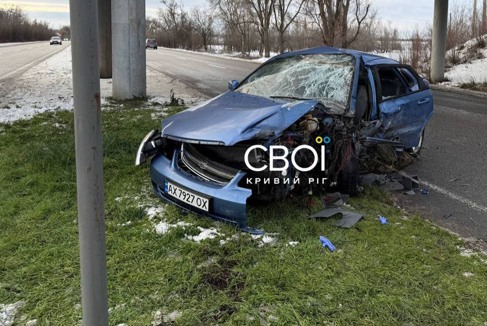 Неподалік Широкого на трасі Дніпро-Кривий Ріг Chevrolet влетів у стовп, передає "Відомо" з посиланням на Телеграм-канал "Свої — Кривий Ріг".