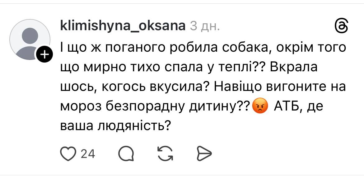 Початок цієї історії Скандал у Дніпрі: у супермаркеті охорона вигнала на мороз собаку, попри прохання відвідувачів