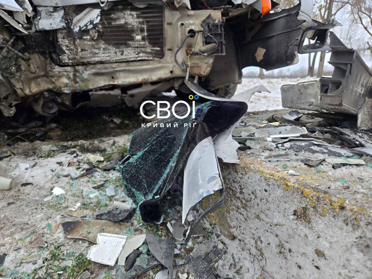 Внаслідок зіткнення автівку добряче зімʼяло, а її уламки розлетілися навкруги.