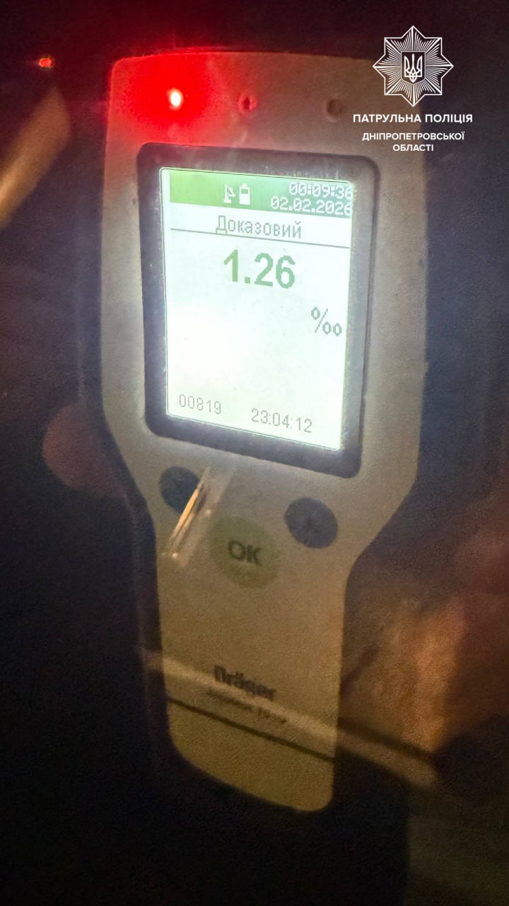 У Дніпровському районі за порушення ПДР зупинили Renault Megane. Патрульні помітили в кермувальника ознаки алкогольного сп’яніння, чоловік погодився пройти освідування на місці. Результат тесту - 1,26 проміле. На нього склали адмінматеріали за керування у стані сп’яніння.