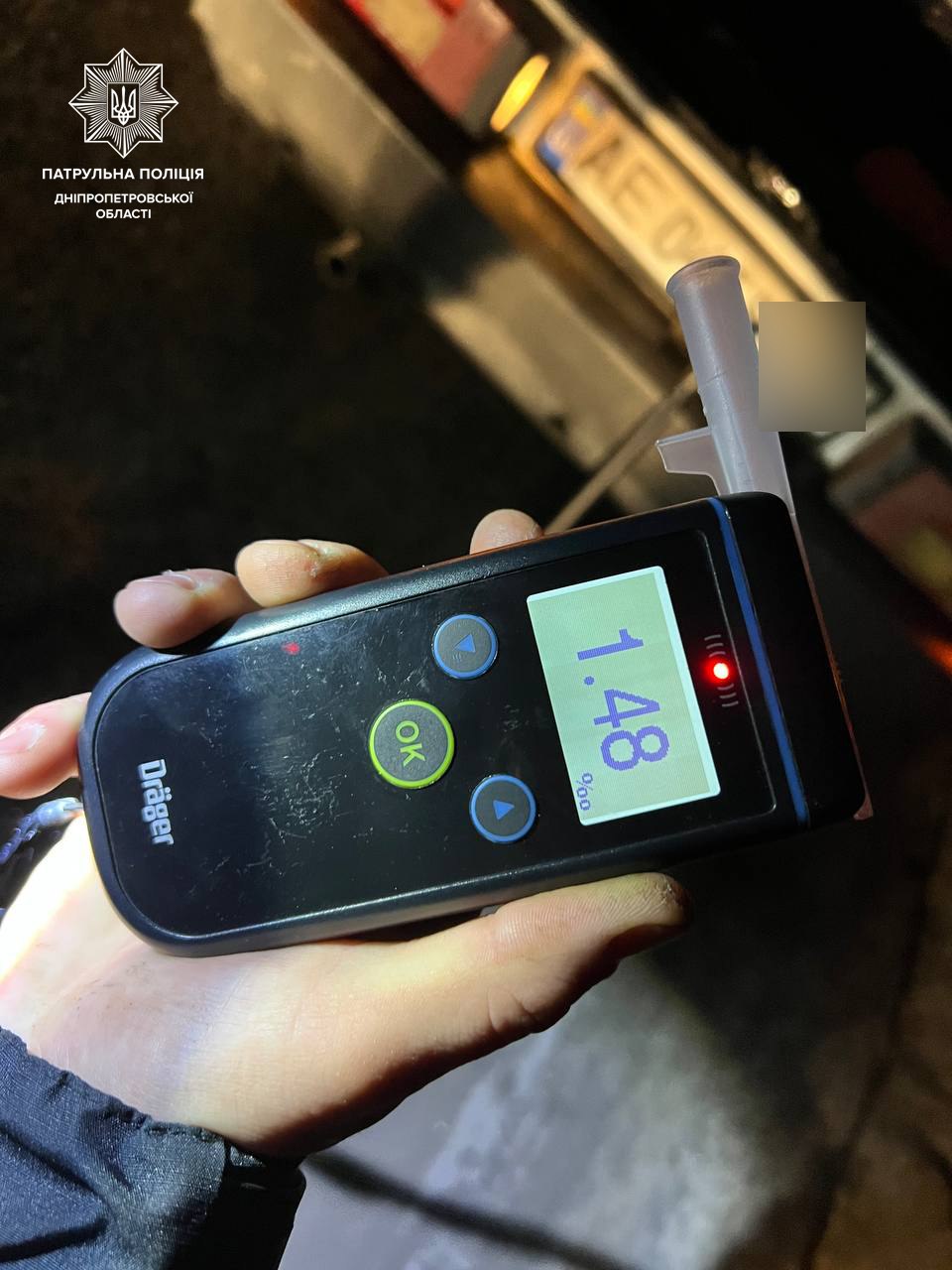 Ще одного порушника зупинили у Новокодацькому районі - водій автомобіля ЗАЗ порушив ПДР. Під час спілкування патрульні також помітили ознаки сп’яніння. Огляд підтвердив алкоголь у крові - 1,48 проміле. На кермувальника оформили відповідний протокол.