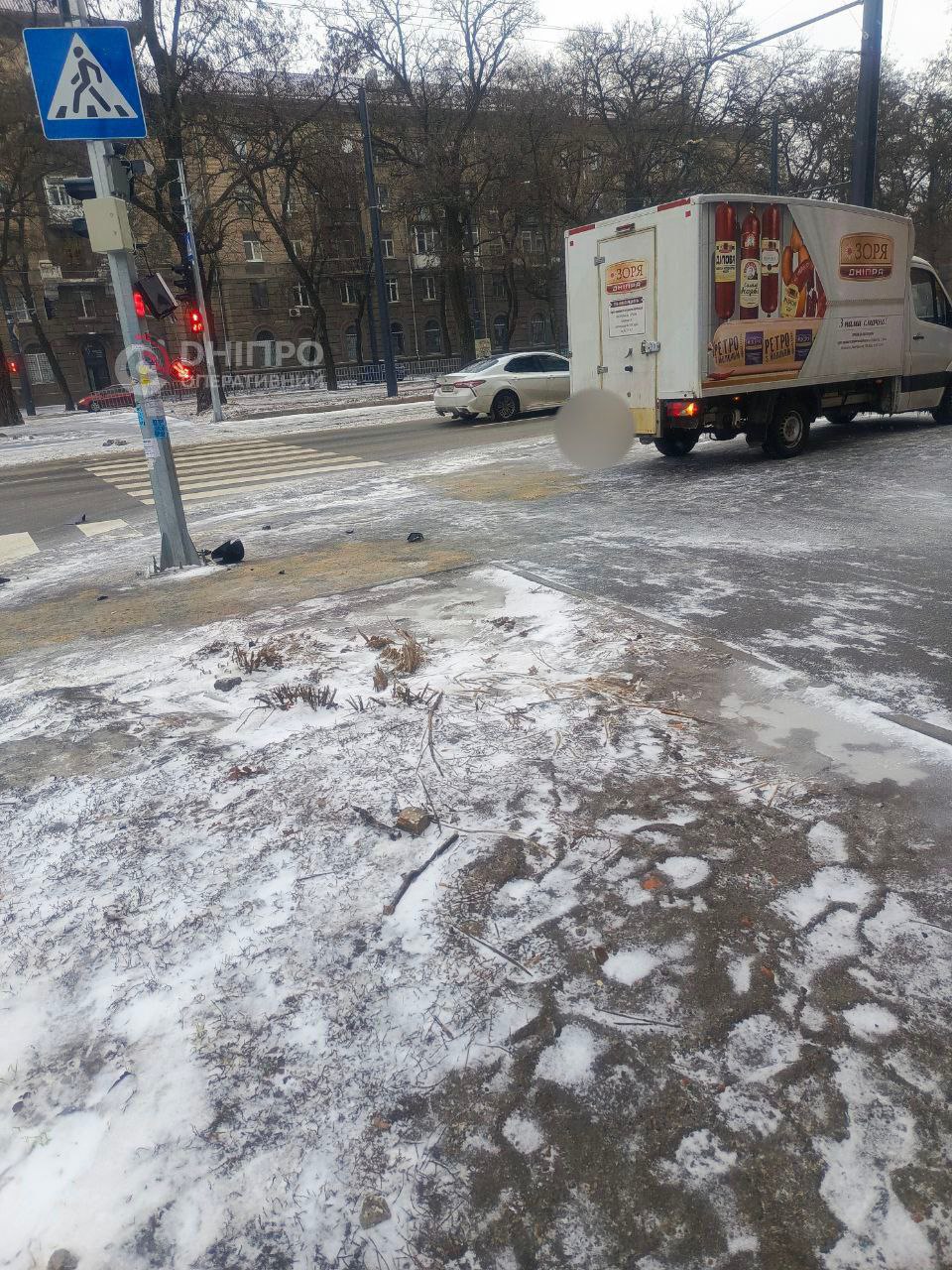 На вулиці В’ячеслава Чорновола у Дніпрі водій вантажівки зачепив світлофор автівкою, розтрощивши його майже вщент, передає "Відомо" з посиланням на Телеграм-канал "Дніпро Оперативний".