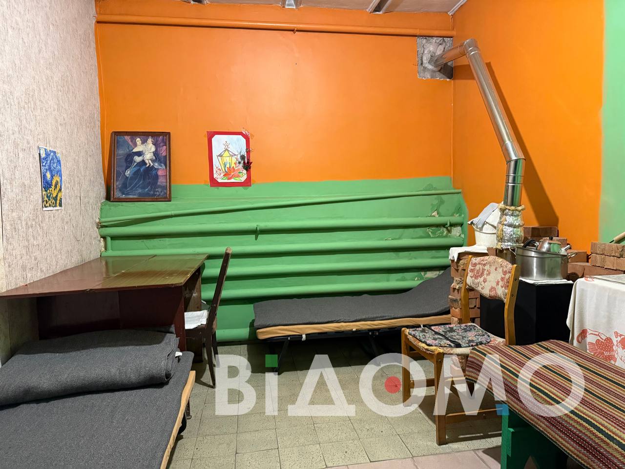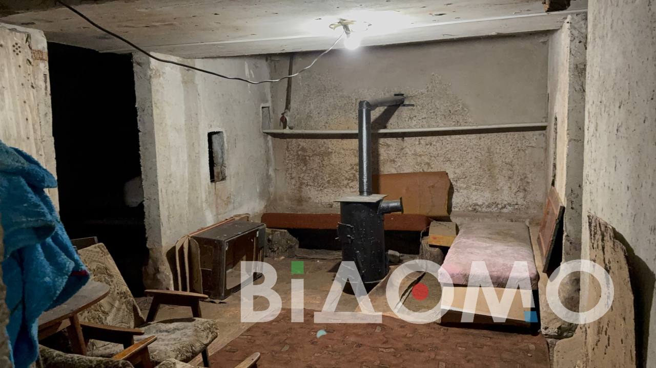 Під час тривоги сюди спускаються десятки мешканців, переважно літні люди. У кількох невеликих кімнатах стоять старі дивани, крісла, буржуйка з дровами. Є навіть туалет і поручні біля сходів.