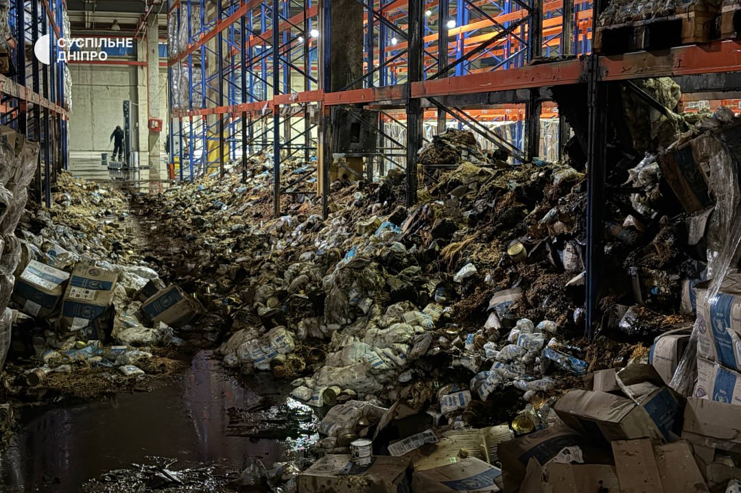 Як видно на фото, вогнем знищені макаронні вироби, крупи, консерви тощо. Те ж, що вціліло, вже не придатне для споживання. Наразі представники програми підраховують збитки.