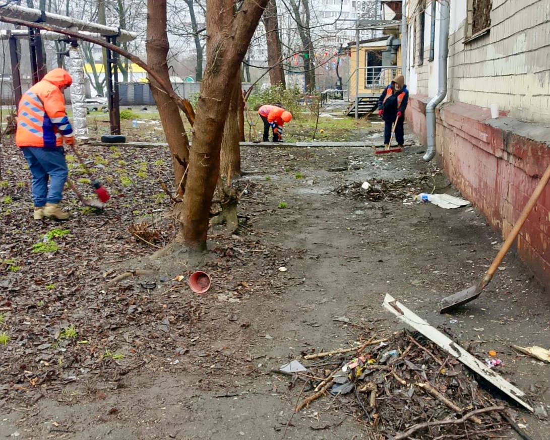 Комунальники звільняють подвір’я від будівельного сміття і вивозять його. Мешканці пошкоджених будинків пораються у квартирах, розчищають їх від потрощених речей та віконного скла.