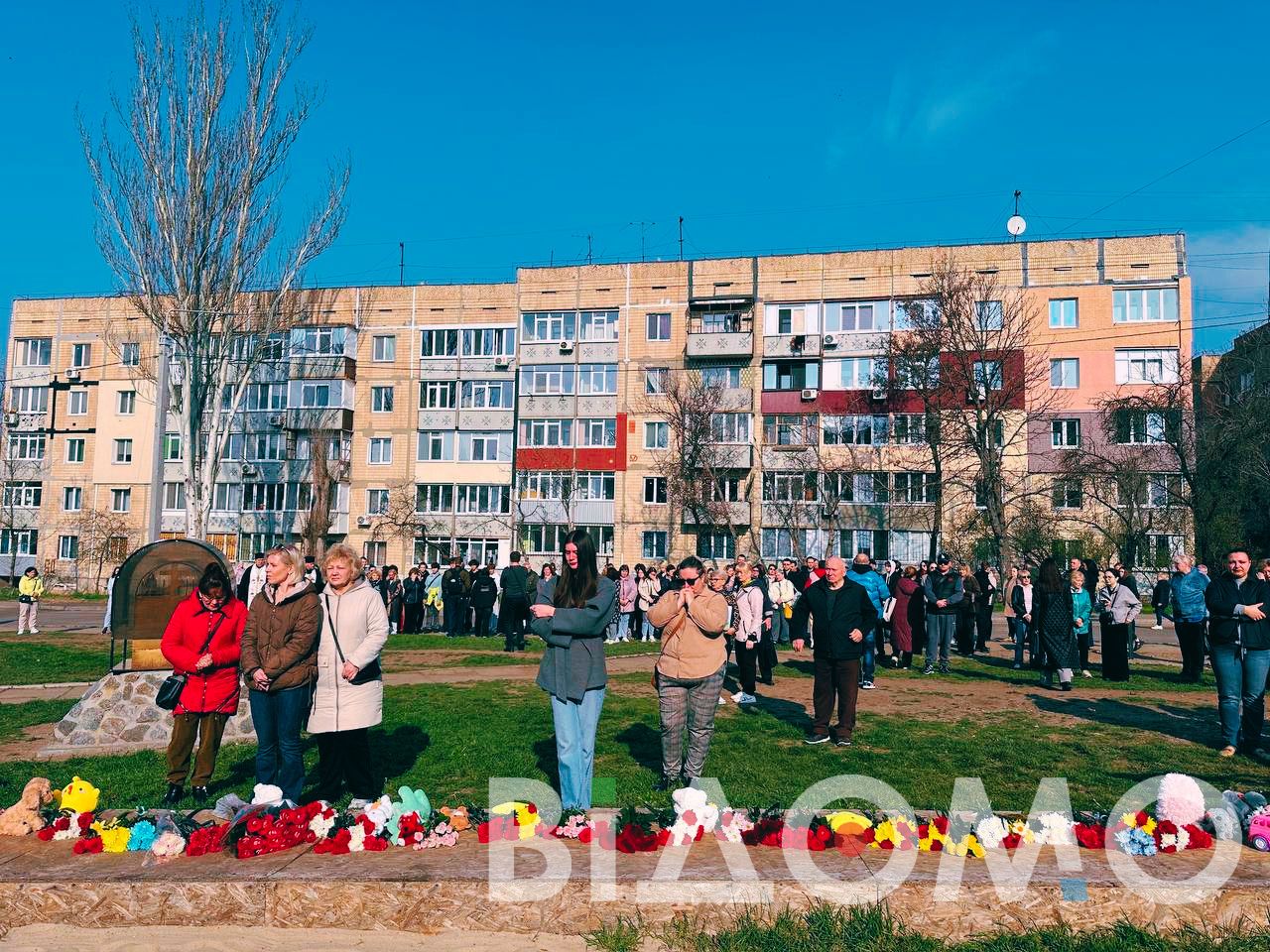 У Кривому Розі 4 квітня сотні мешканців міста приїхали на місце ракетного удару по дитячому майданчику рік тому, аби вшанувати памʼять 20 вбитих росією людей, серед яких девʼять — діти, віком від трьох до 17 років, передає "Відомо".