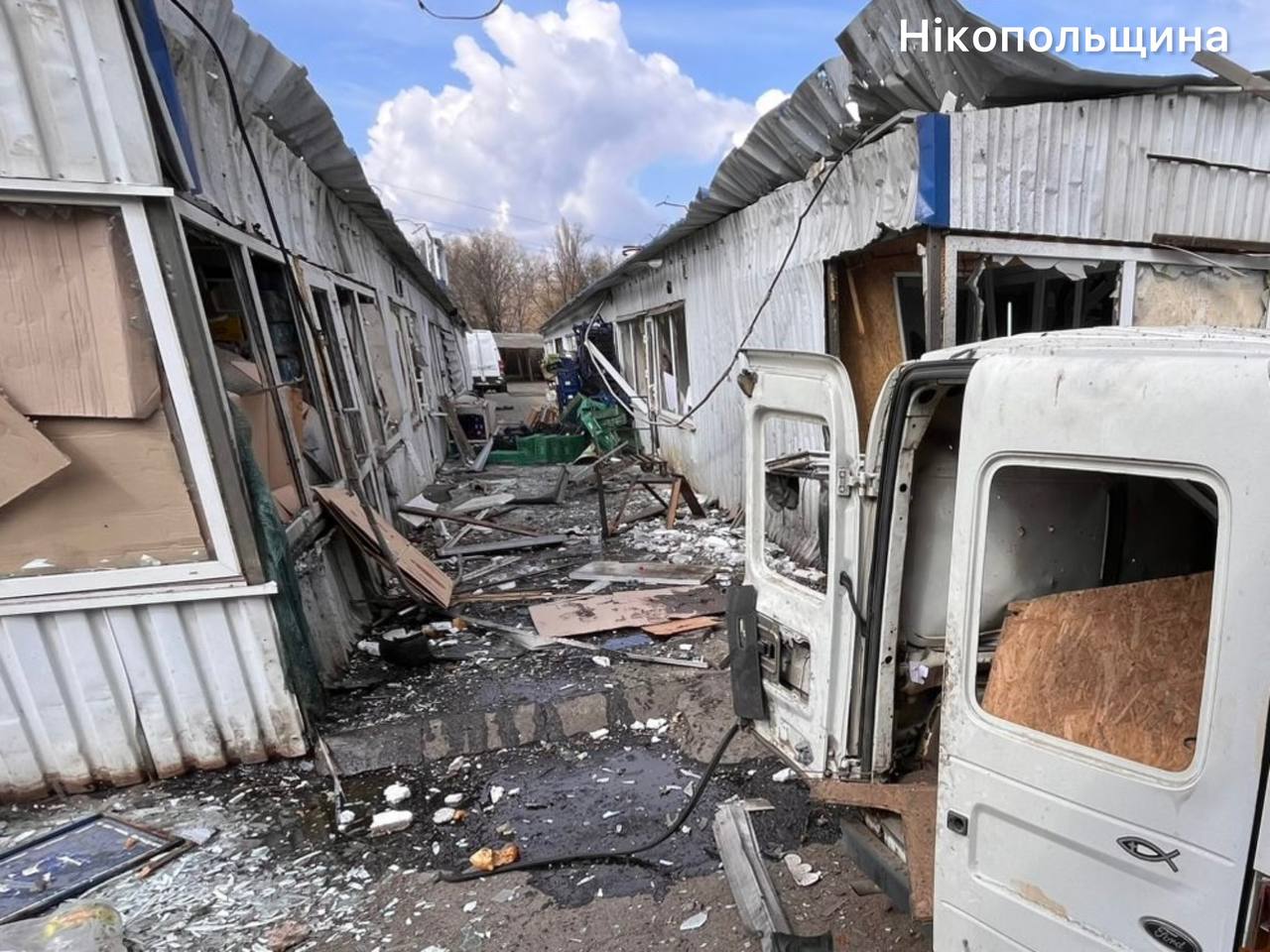 На Нікопольщині потерпали райцентр, Червоногригорівська, Покровська, Марганецька, Мирівська громади. Пошкоджені понад три десятки торговельних павільйонів, сільськогосподарське підприємство, приватний будинок, господарська споруда, авто.